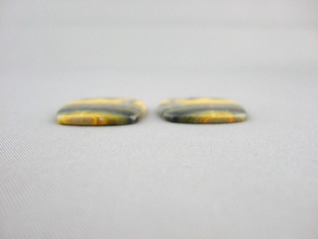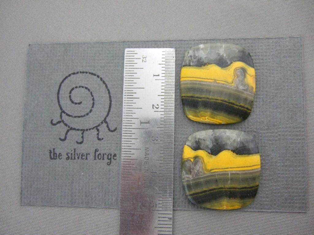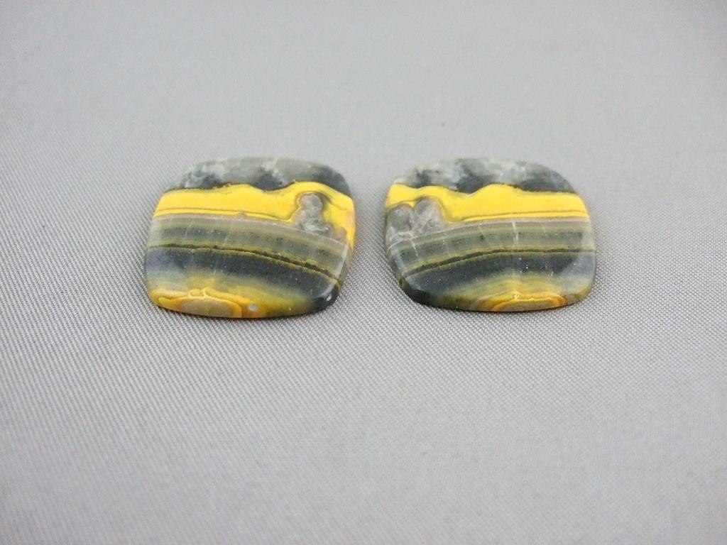 Bumblebee Agate Cabochons The amazing eclipse bumblebee agate gemstone cabochons shown here are 25mm long. They are available to be handcrafted into a custom made ring or pendant for you.Share this: