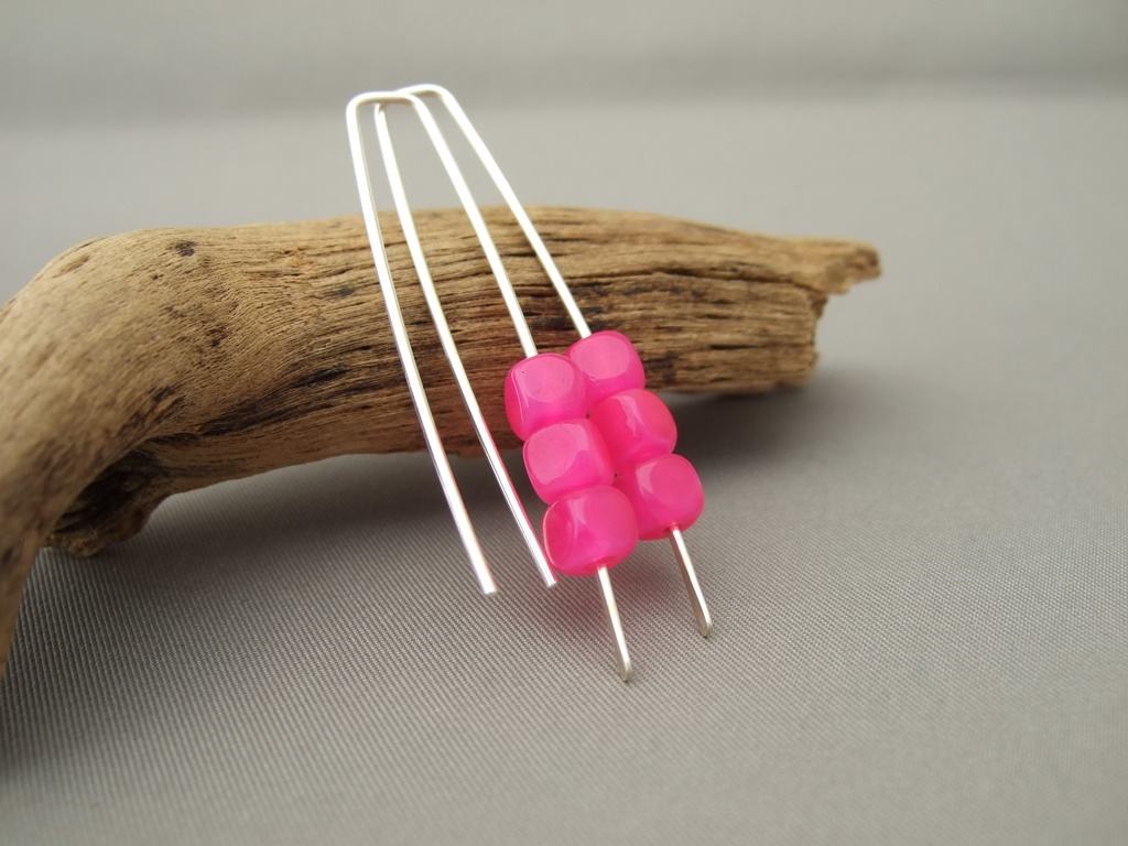 Round hoops are a nice earring shape to give more depth to the earring. Square hoops are the same. I usually wear mine with the right angle corner at the centre of the lobe, but you could wear them with the longer side flat through the lobe if you want.