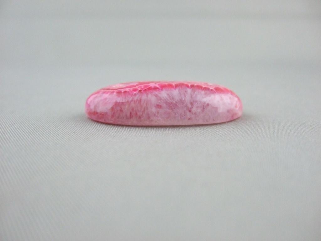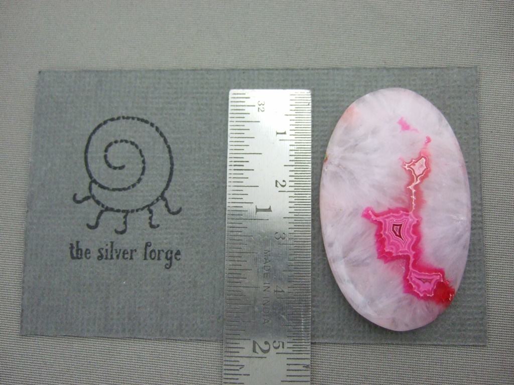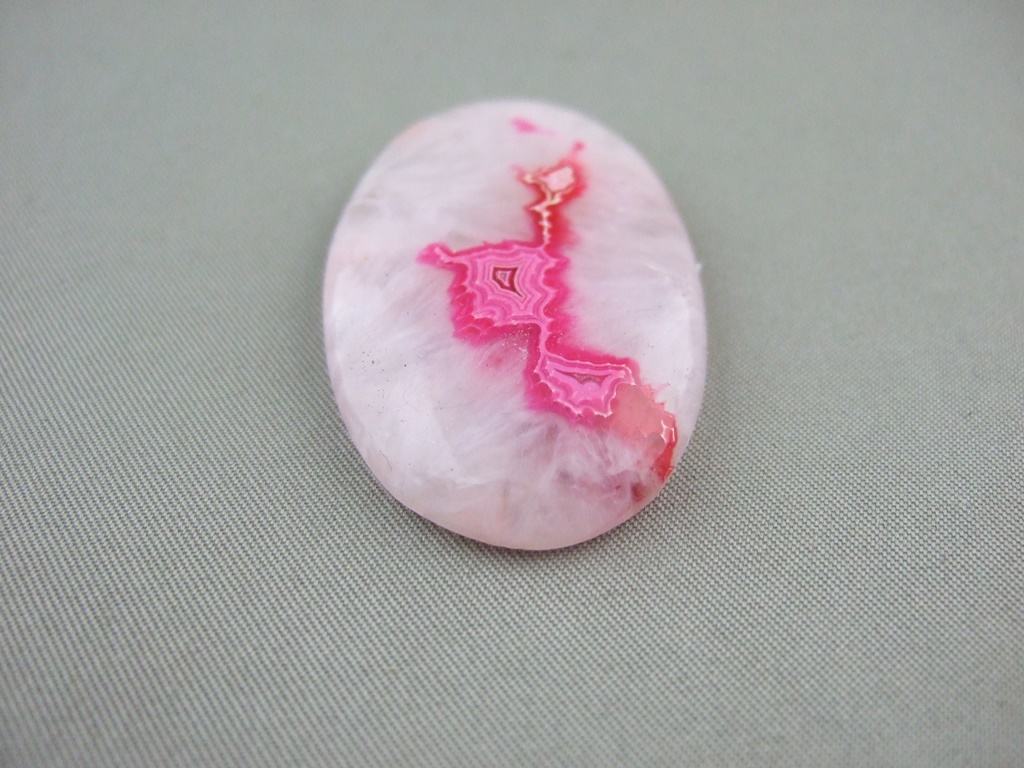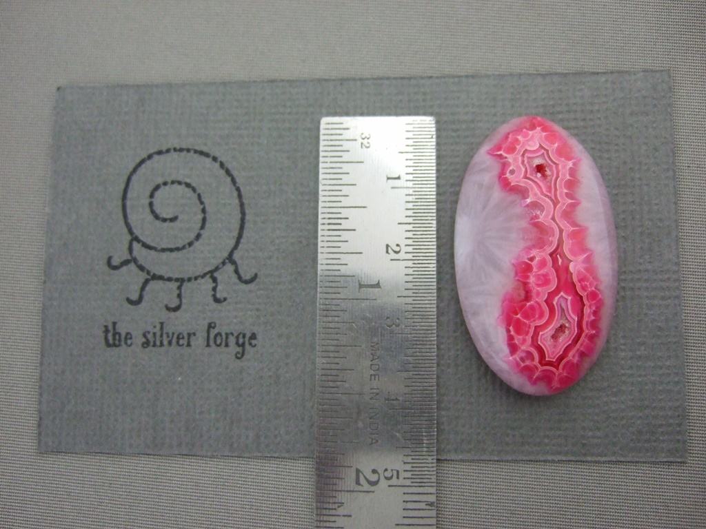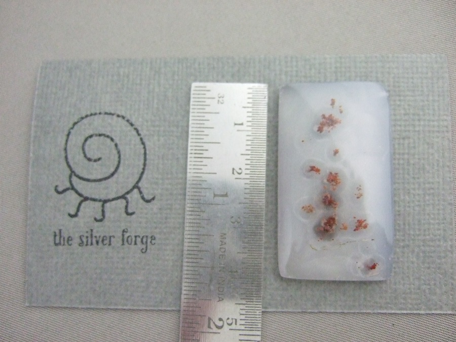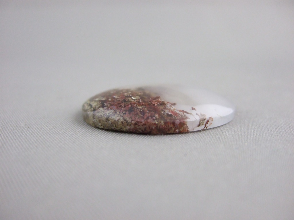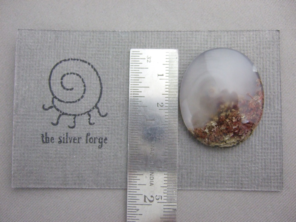 The lovely red moss agate gemstone cabochon shown here is 39mm long. It is available to be handcrafted into a custom made ring or pendant for you.