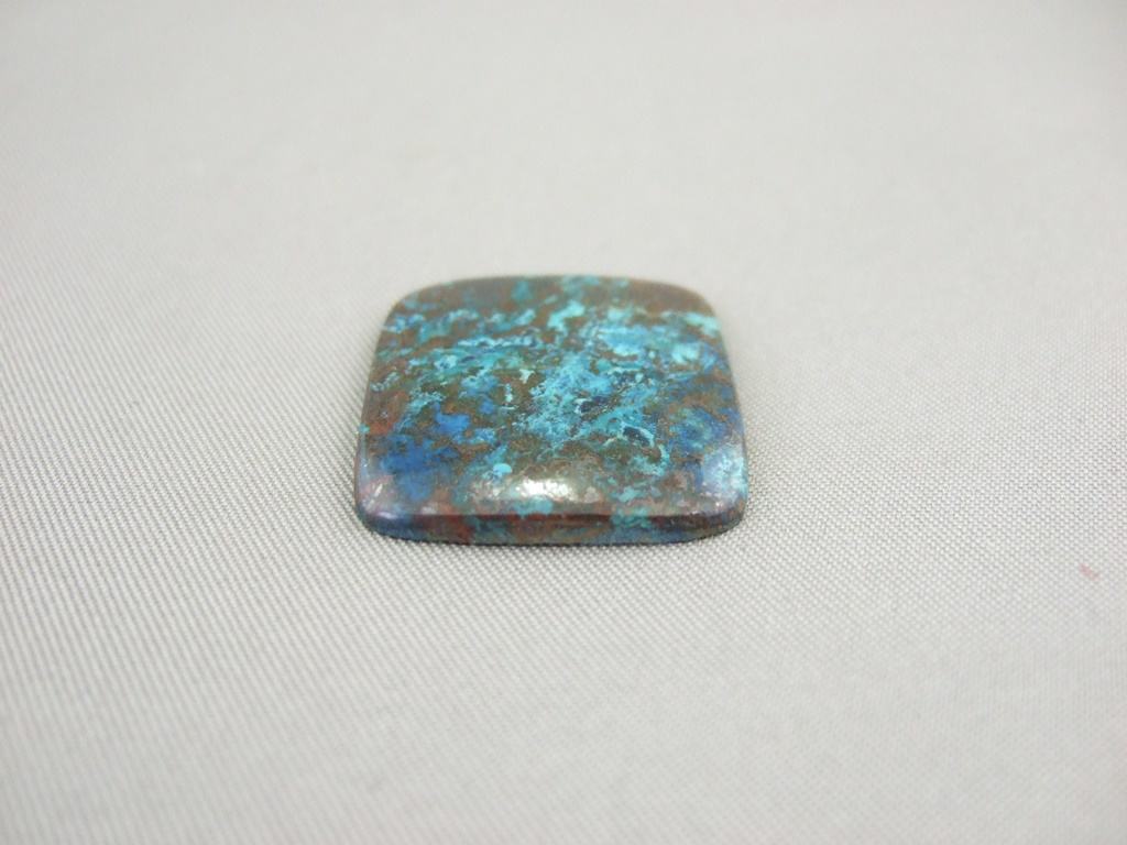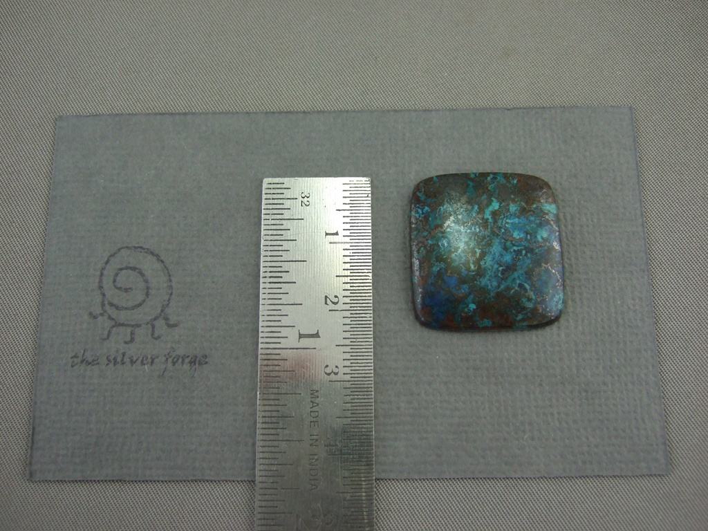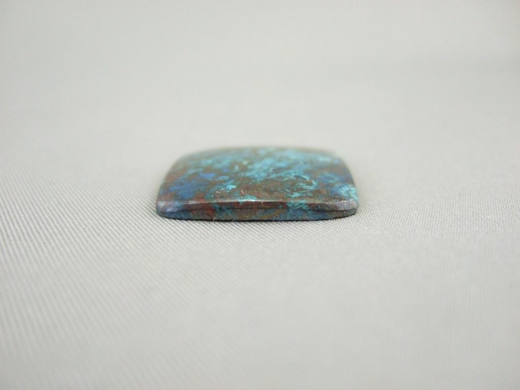 The lovely azurite malachite & chrysocolla gemstone cabochon shown here is 19mm long. It is available to be handcrafted into a custom made ring or pendant for you.