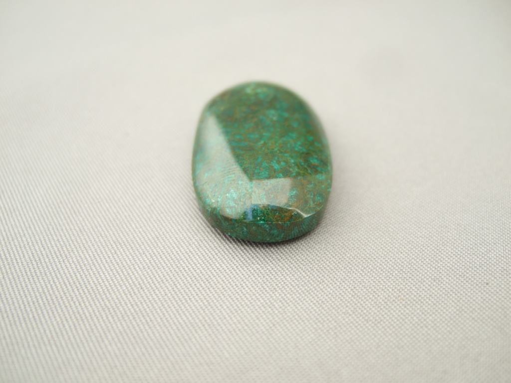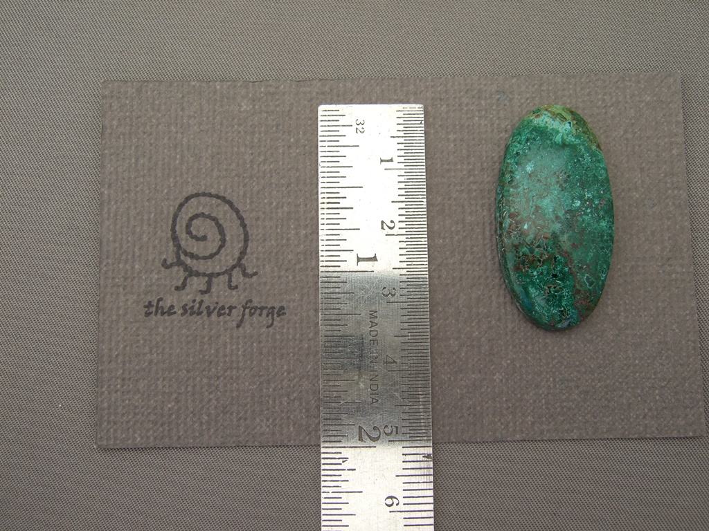 The gorgeous chrysocolla gemstone cabochon shown here is 35mm long.