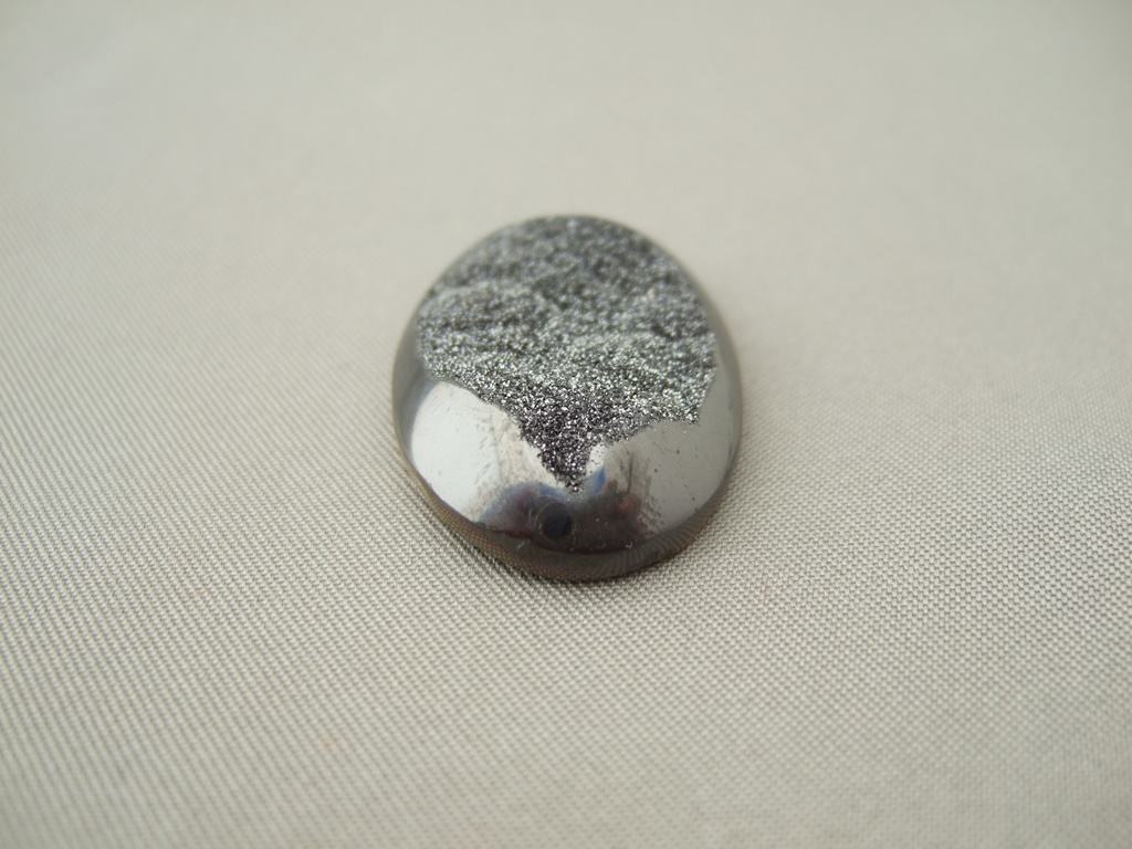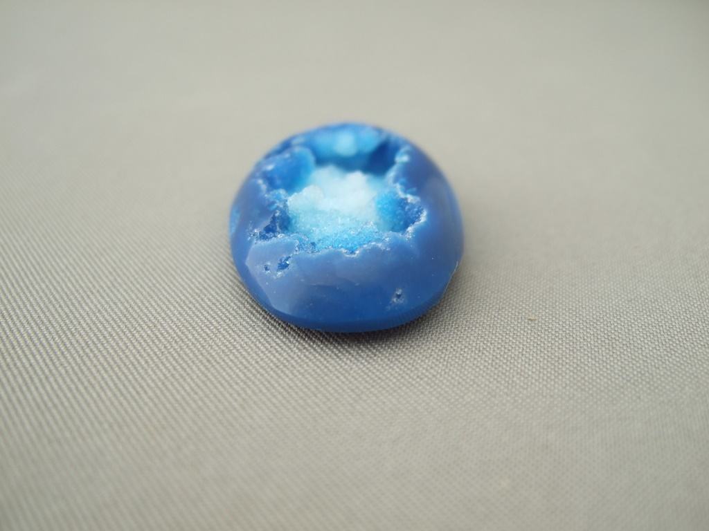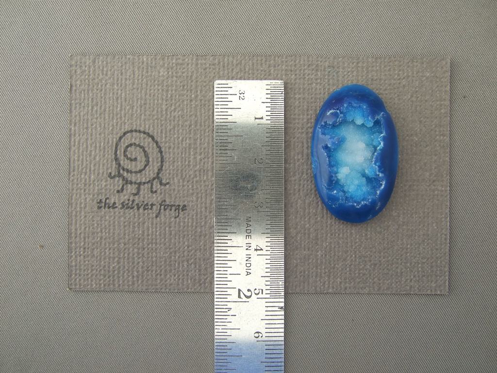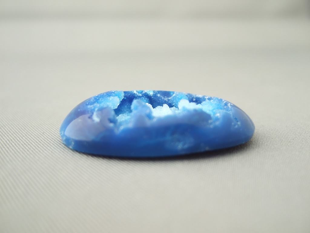 This drusy cabochon has been dyed. You can read more about gemstone treatments here. In order to keep your drusy looking good, it is recommended that you do not get it wet or expose it to sunlight for prolonged periods. Your piece can be cleaned using a soft silver polishing cloth.
