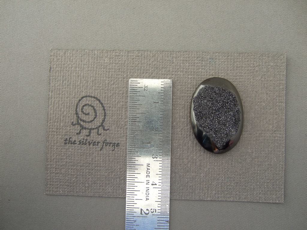 The pomegranate red drusy agate gemstone cabochon shown here is 25mm across. It is available to be handcrafted into a custom made ring or pendant for you. You can read more about what drusy agate is here.
