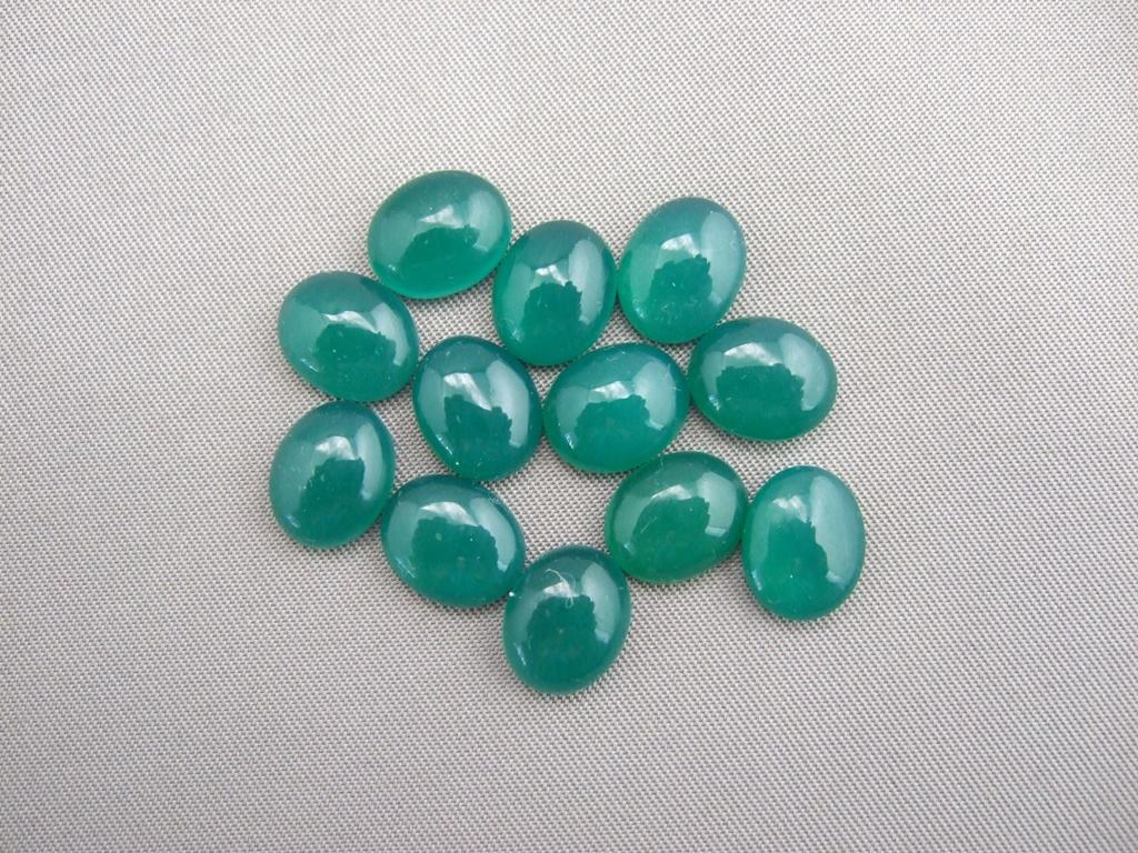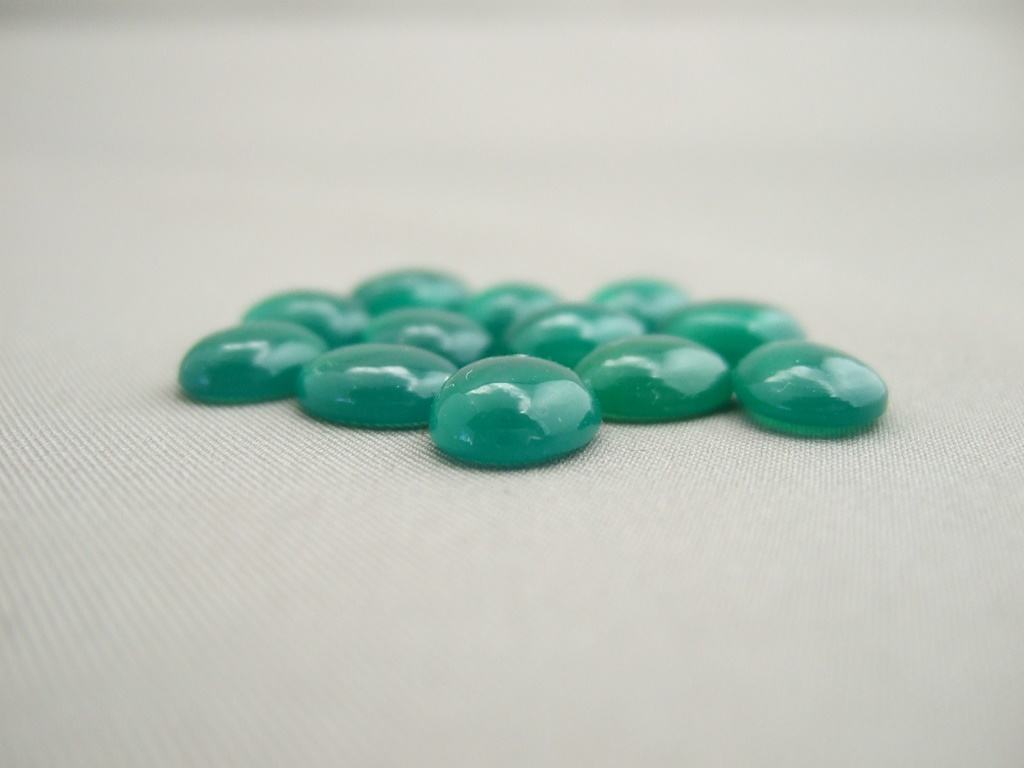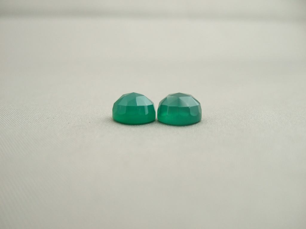 The green onyx rose cut gemstone cabochons shown here are 10mm by 8mm, and are available to be handcrafted into custom pieces for you.