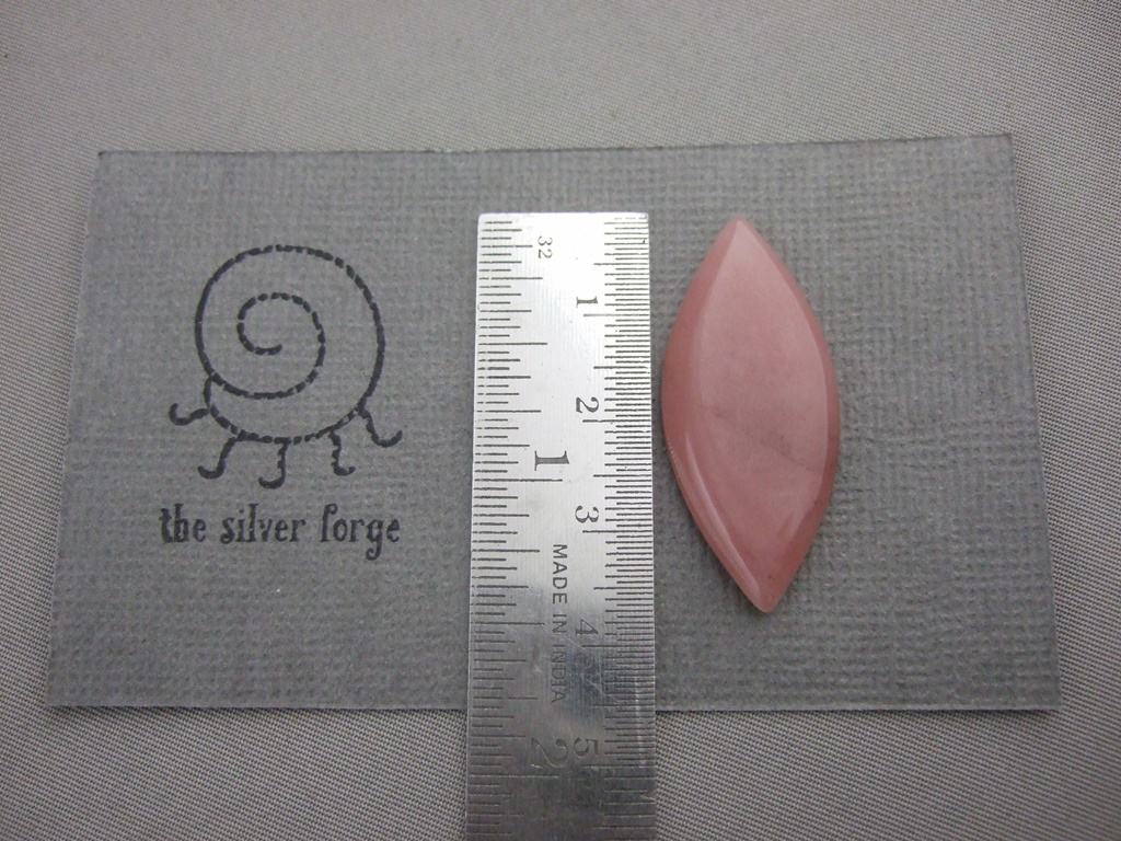 The gorgeous freeform strawberry quartz gemstone cabochon shown here is 28mm long. It is available to be handcrafted into a custom made ring or pendant for you.