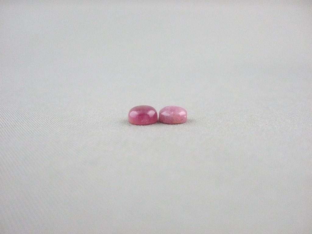 The pink tourmaline gemstone cabochons shown here are 6mm in diameter, and are available to be handcrafted into custom pieces for you.
