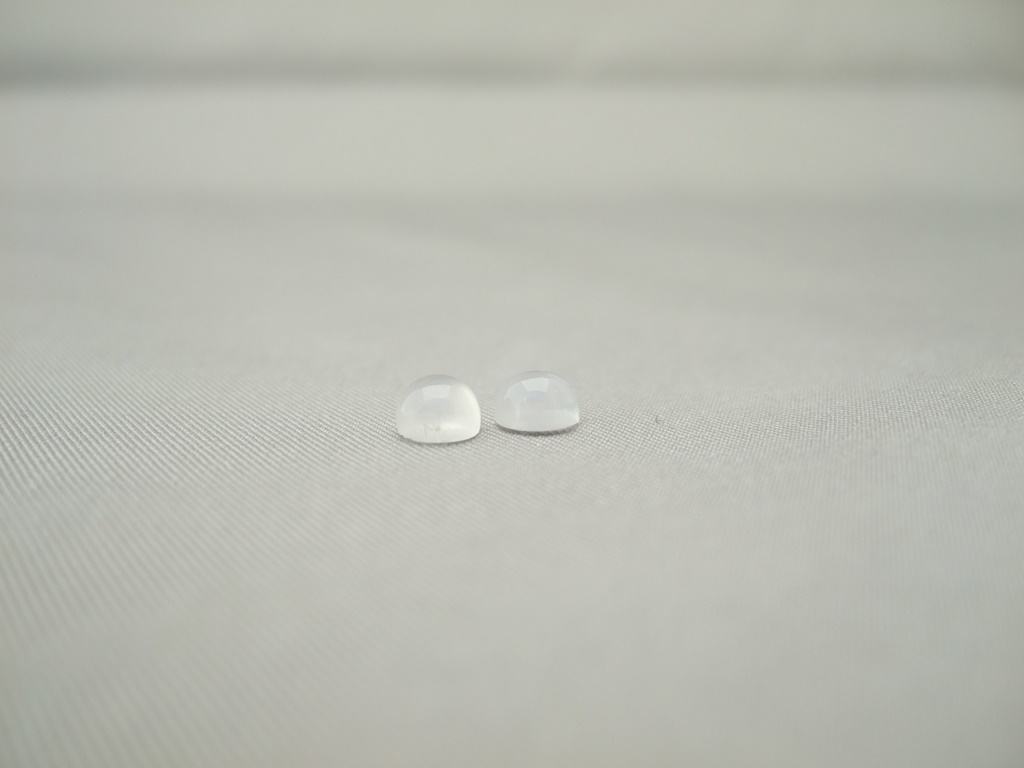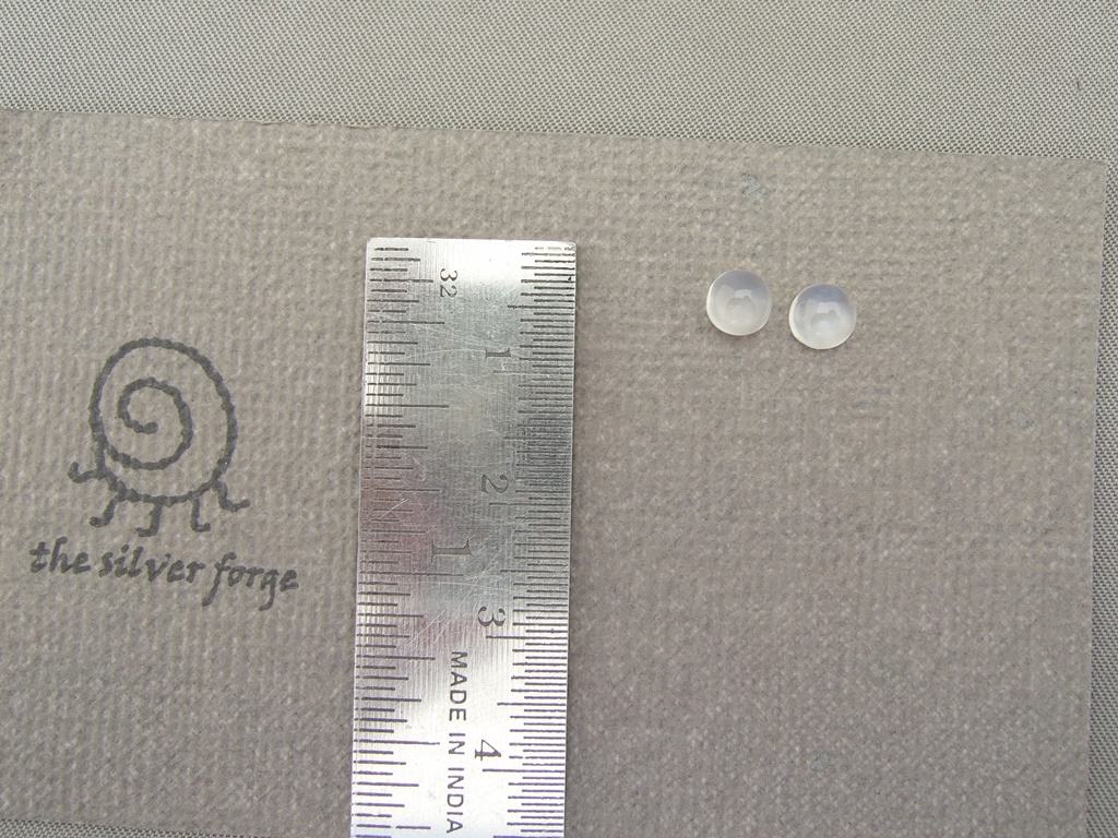 The white quartz gemstone cabochons shown here are 5mm in diameter, and are available to be handcrafted into custom pieces for you.